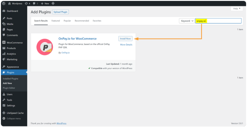 Once installed, locate OnPay in your list of installed plugins and click Settings.
